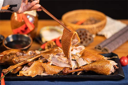 ◆ 恒温熏烤:使用全智能锁水熏烤炉进行恒温烤制,确保鹅肉的口感、口味能够持续保持稳定,烤出来的鹅肉外皮紧致、内部鲜嫩多汁。